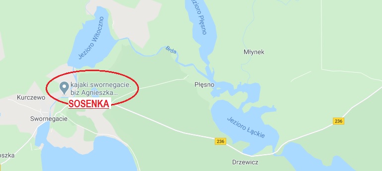 Pole namiotowe Sosenka umieszczone jest w miejscowości Swornegacie w bezpośrednim sąsiedztwie rzeki Brdy, Zaborskiego Parku Narodowego, Borów Tucholskich oraz Kaszub. Niezwykle malownicze położenie, bogate w piękny krajobraz, ciszę oraz niezliczone ilości tras rowerowych i kajakowych pozytywnie wpływa na wypoczynek. Camping zlokalizowany jest przy rzece Brda, pomiędzy jeziorem Karsińskim i Witoczno, co stanowi idealny punkt na przenocowanie podczas spływu kajakowego.